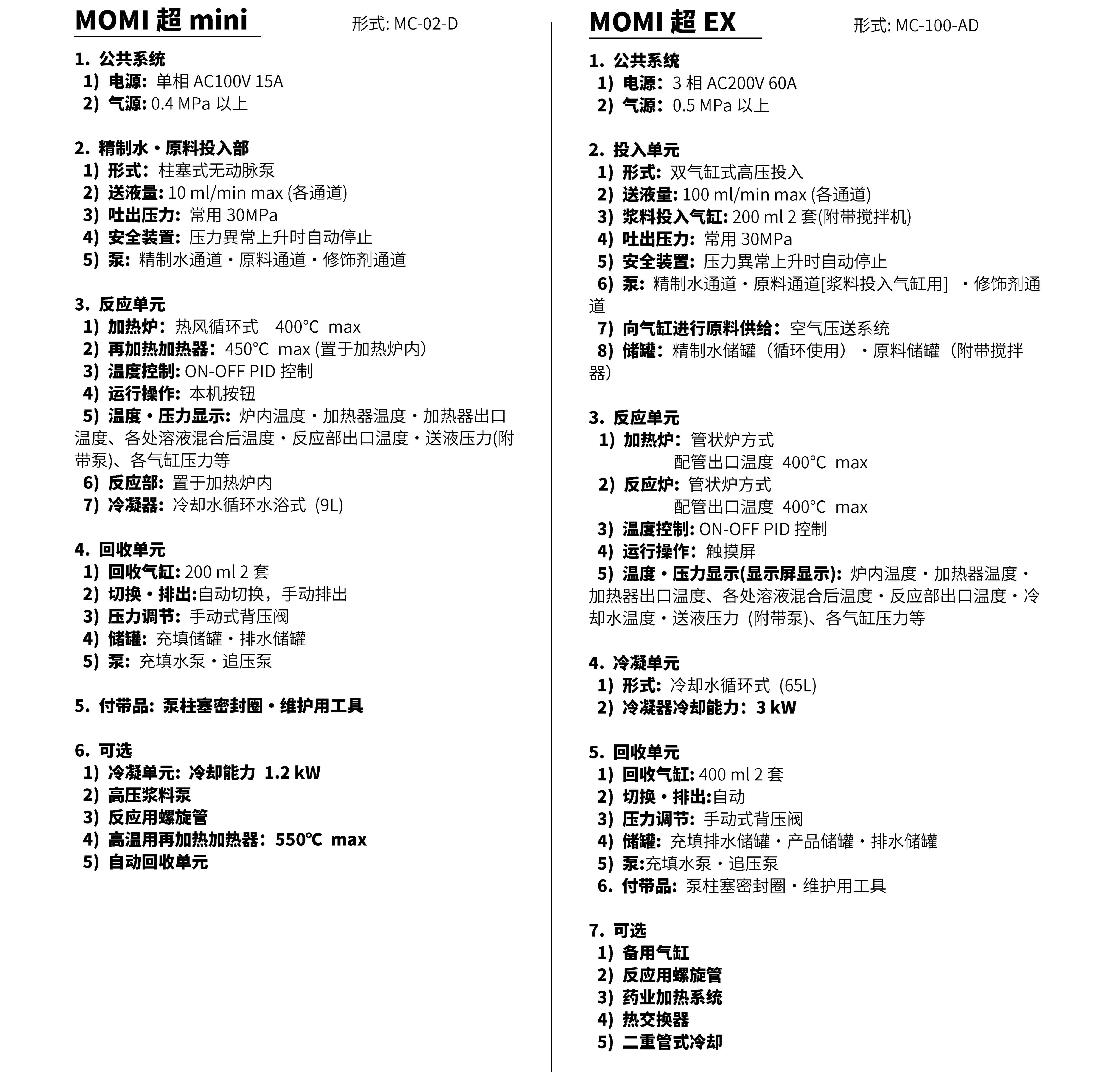 通过流通方式进行超临界水处理的装置。 超临界水指的是:在温度374°c,压力22.lMPa以上状态的水兼具液体和 气体特质的状态。本装置为流通式,连续进行原料处理,比起批量式节约时间。粒子送液·回收通过气缸系统。